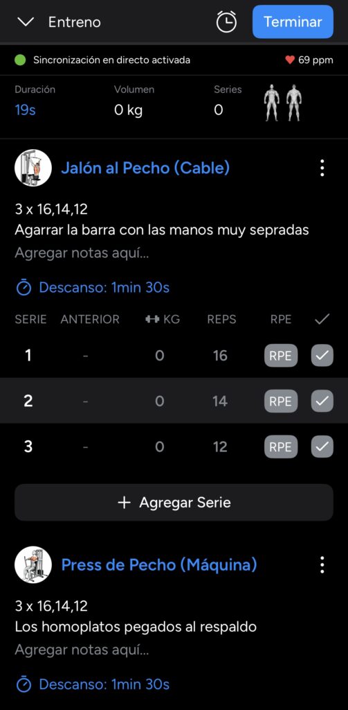 trabajo según las series y músculos